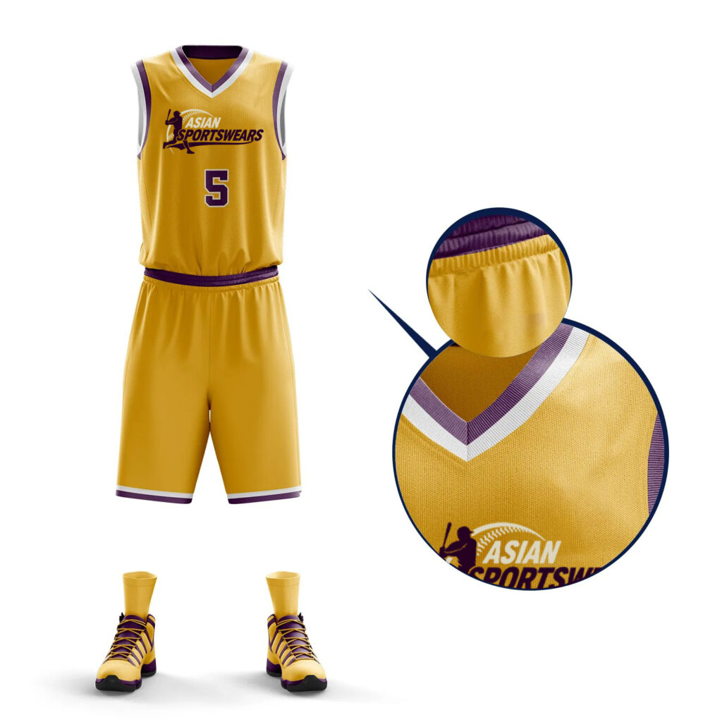 We are a trusted custom Basket Football uniform Manufacturer in Sialkot, Pakistan. You can choose from a very wide range of base colors. They can then be printed with your team logos, sponsors artwork, player names, and numbers too.